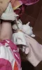 Petit lapin blanc avec un hochet à l’intérieur.
