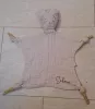 C est une sorte de "patte" mais avec une tête de léopard beige en tissus "gaze" et dessus c est ecrit Selma en noir.
