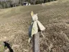 Un doudou attend son petit propriétaire en haut du chemin vieux à Serrière (NE)