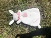 Doudou lapin blanc et rose trouvé au bord de la rue à Gland