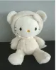 Doudou chat blanc qui ressemble presque à un petit ourson. Le revers du doudou est avec des petits pois noirs.