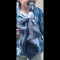 Doudou avec face bleu et une face blanche avec des étoiles
