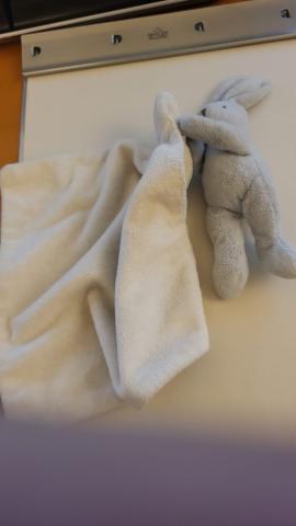 Trouvé ce petit lapin avec sa couverture, probablement perdu dans la semaine du 29 septembre, à l'avenue de la Gare 10 (Lausanne). Il aimerait bien retrouver son ou sa propriétaire pour lui faire plein de câlins (il y a du retard à rattraper !) Il porte une étiquette dans le dos indiquant son lieu de naissance (Jacadi, Paris)