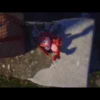 Animal (lion?) jaune avec poche grise
