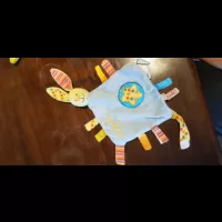 Doudou baby luna de la marque toodo, bleu et jaune