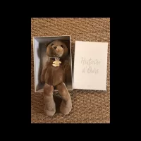 Ourson brun avec longues jambes et collier histoire d’ours