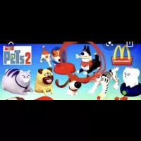 Chien en plastique avec os dans la bouche. Vient du Mcdonald
