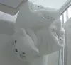 Doudou chat blanc qui ressemble presque à un petit ourson. Le revers du doudou est avec des petits pois noirs.