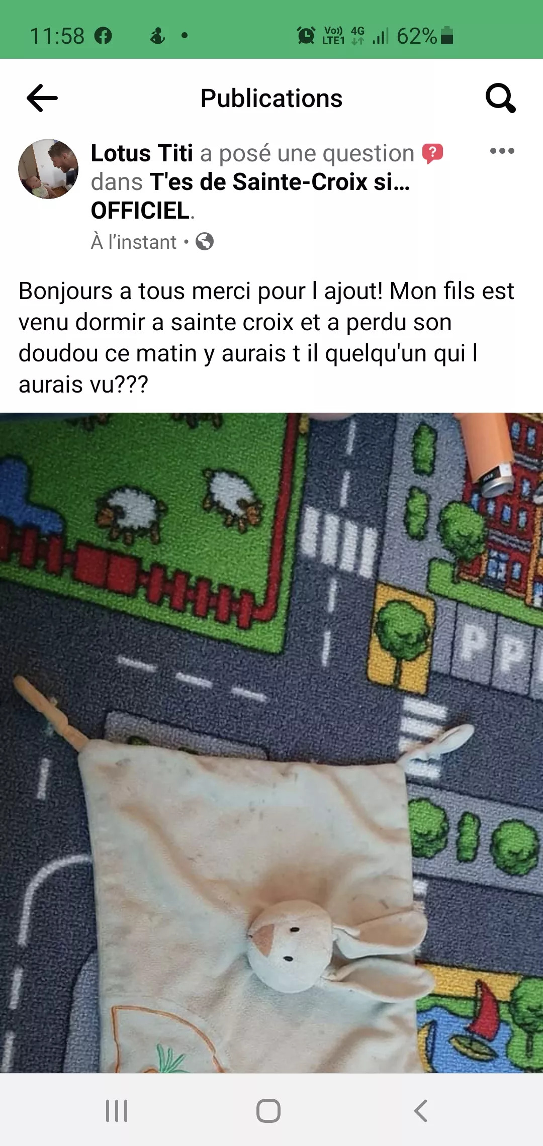 info Perdu ce matin a sainte croix Catégorie doudous perdus Canton Vaud Ajouter un commentaire Votre nom Email de Contact Commentaire À propos des formats de texte Plain text Les lignes et les paragraphes vont à la ligne automatiquement. Combien font trois plus trois CAPTCHA Math question (3 + 0 =) Trouvez la solution de ce problème mathématique simple et saisissez le résultat. Par exemple, pour 1 + 3, saisissez 4. Cette question sert à vérifier si vous êtes un visiteur humain ou non afin d'éviter les soumissions de pourriel (spam) automatisées. Laisser ce champ vide