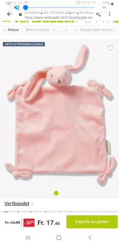 info Perdu un petit doudou lapin rose avec comme corps un carré de tissu où il y a brodé Sweet Lily-Rose sur la région de la ville de Sierre, entre la gare, région du cimetière et le centre ville. La photo n'est pas tout à fait identique mais dans le style du doudou Catégorie doudous perdus Canton Valais Ajouter un commentaire Votre nom Email de Contact Commentaire À propos des formats de texte Plain text Les lignes et les paragraphes vont à la ligne automatiquement. Combien font trois plus trois CAPTCHA Math question (5 + 10 =) Trouvez la solution de ce problème mathématique simple et saisissez le résultat. Par exemple, pour 1 + 3, saisissez 4. Cette question sert à vérifier si vous êtes un visiteur humain ou non afin d'éviter les soumissions de pourriel (spam) automatisées. Laisser ce champ vide