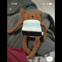 Doudou chat/lapin brun blanc bleu mailles