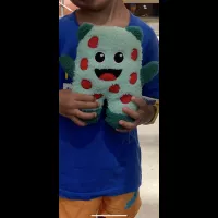Grosse peluche Bulbizarre avec fraise sur le dos.