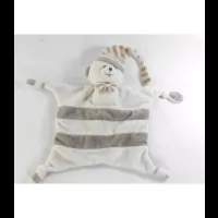 Doudou plat ourson rayé beige et blanc