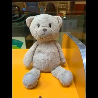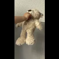 Ourson beige (teddy bear). Il est assez usé et son oreille droite est un peu cassée.